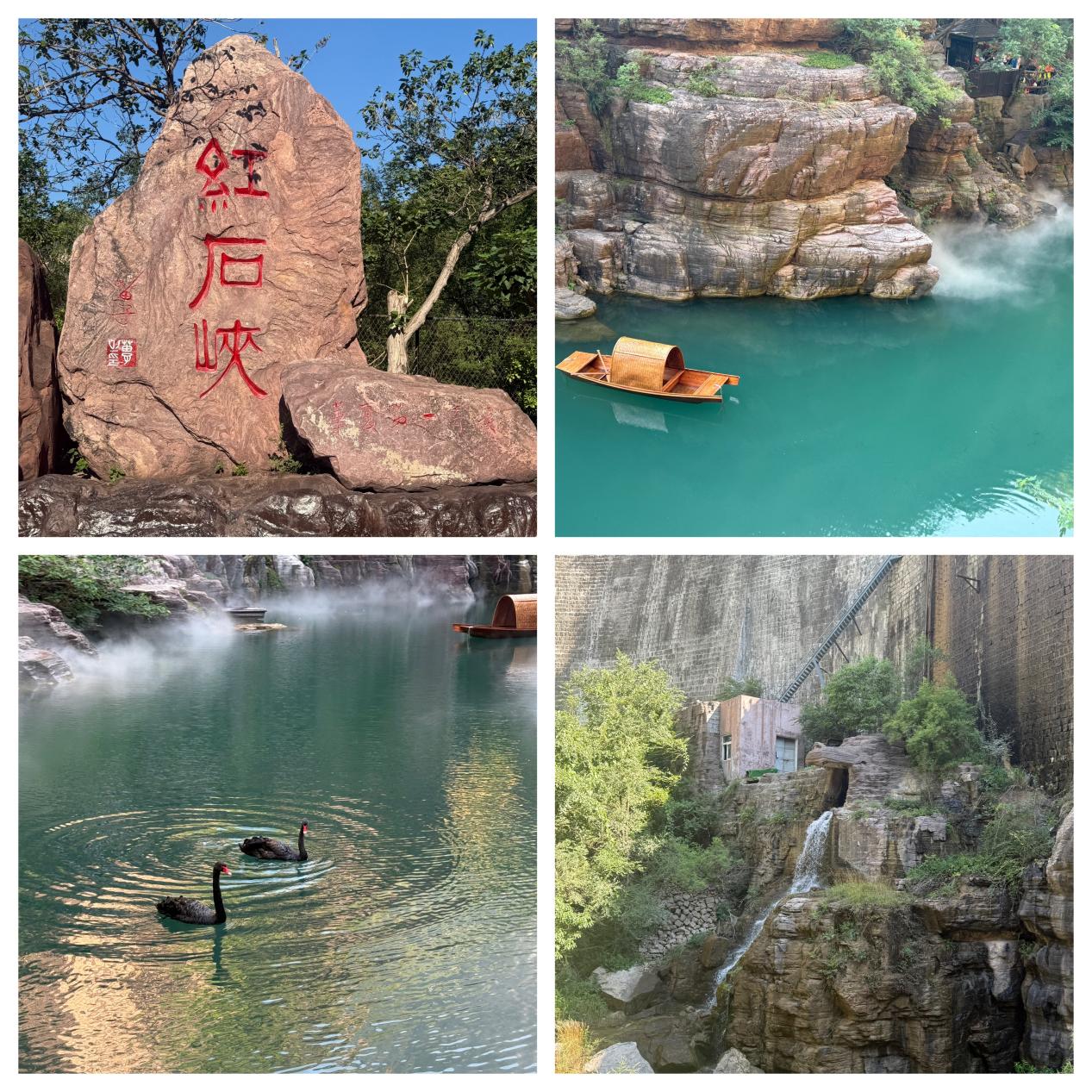 Рано следующее утро мы поехали в ущелье красного камня. Как сливки урожая в горной местности Юнтай в Цзяоозуо, провинция Хэнань. Red Stone Gorge - это живописное пятно, интегрирующее пружины, водопады, ручьи и бассейны. По состоянию на 28 апреля 2023 года он длиной 2000 метров, а каньон находится на 68 метрах глубиной под землей, что приносит ему репутацию «Чудо -ущелье №1 в Китае » и «Бутик -коридор природных гор и вод».