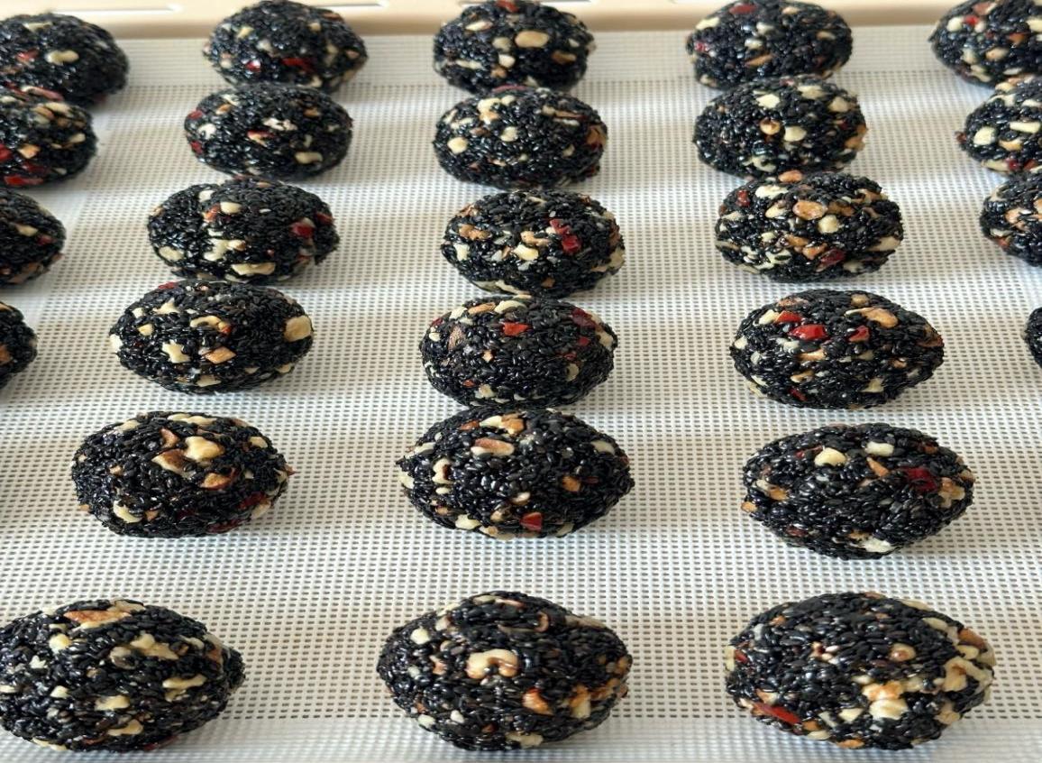 При холодных ветрах осенью и зимой организм наиболее подвержен «высыханию» и «истощению». Грецкий орех, красный финик и шарик кунжута объединяют самый простой «маленький тоник» из трех вкусов в легко доступную теплоту. Грецкие орехи увлажняют мозг, красные финики наполняют кровь, а кунжут питает почки. Их вручную скатывают в небольшие шарики и добавляют лишь небольшое количество меда, чтобы связать их. В нем нет консервантов и сахара.