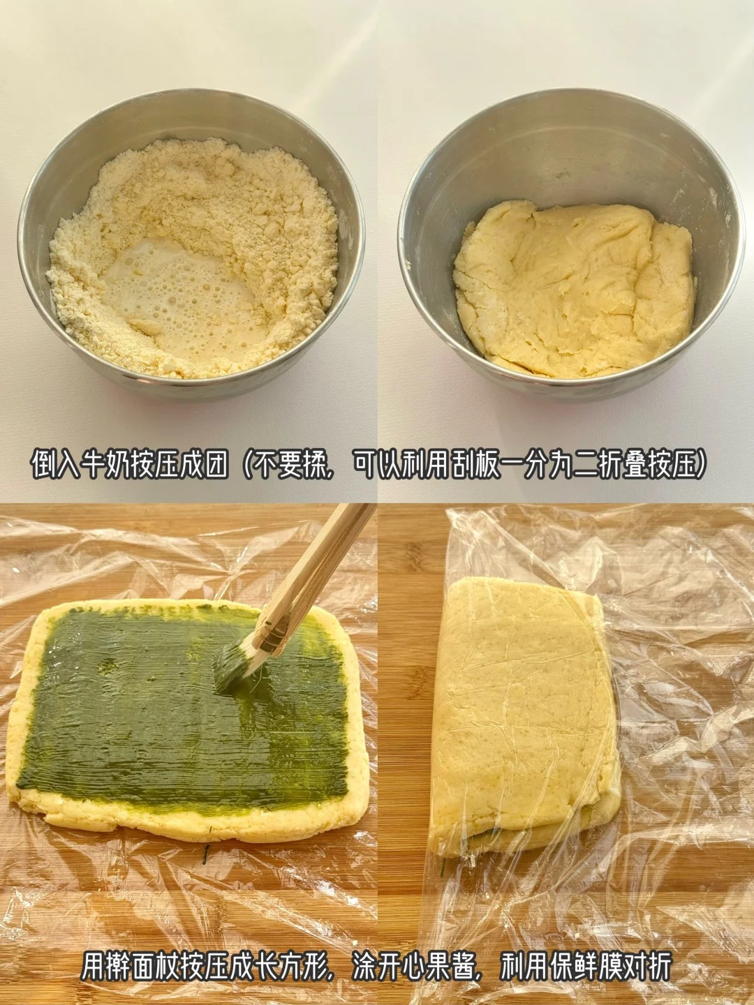 Ингредиенты: 200 г муки с низким содержанием глютена, 1 г соли, 25 г сахара, 80 г сливочного масла, 1 яичный желток, 6 г разрыхлителя, 70 г молока, фисташковая паста по необходимости.