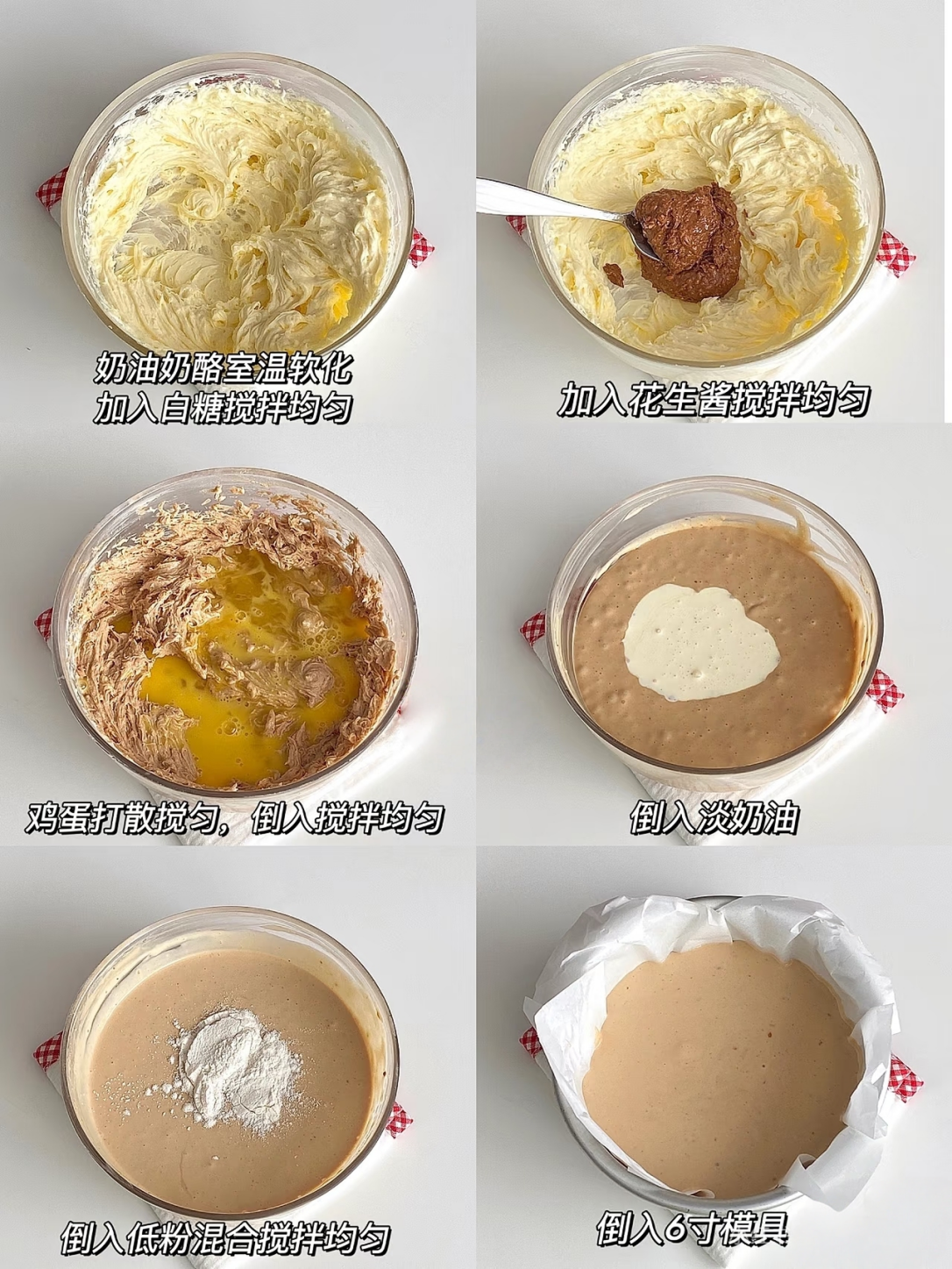 4. Вылейте все смешанные ингредиенты в 6-дюймовую форму, поставьте ее в разогретую духовку, запекайте при температуре 210°C около 20 минут (регулируйте в зависимости от вашей духовки), дайте остыть после выпечки, затем поставьте в холодильник минимум на 2 часа.