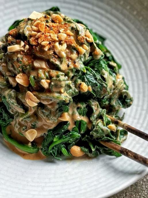 Шпинат с арахисовым Saucetoday, я делаю супер простое холодное блюдо, идеально подходящее для лета! Брошен в кунжутный соус и увенчанный измельченным арахисом для дополнительной текстуры- он быстрый, вкусный, и основной продукт на обеденном столе моей бабушки! Ингредиенты (подают 2)- Шпинат: 300G- измельченный арахис: маленький